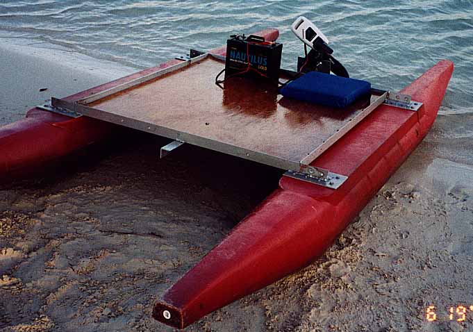 I am getting another aluminum plate to make a keel down the middle of the boat. Initial experiments with the kites indicate that something in the way of a daggerboard or keel is needed. Also, with the big kite the existing rudder might not be enough.